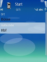 Nachdem Sie alle Eingaben (s.o.) erledigt und ggf. die Herstellung einer Internetverbindung bestätigt haben, wird eine Anfrage an das Auskunftssystem des aktivierten Verkehrsunternehmens gestellt. Wenn Ihre Angaben zu Startort, Starthaltestelle, Zielort und/oder Zielhaltestelle nicht zur eindeutigen Identifizierung Ihres Fahrtwunsches geführt hat, werden Sie nun nacheinander zur Präzisierung der einzelnen Parameter aufgefordert , und zwar in der Reihenfolge
