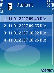 Nachdem Sie alle Eingaben (s.o.) erledigt und die Herstellung einer Internetverbindung handytypabhängig bestätigt haben, wird eine Anfrage an das Auskunftssystem des aktivierten Verkehrsunternehmens gestellt.