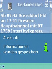 Eine Speicherung des/der Ergebnisse(s) sowie der Anfrage ist analog zur Verbindungsauskunft möglich.