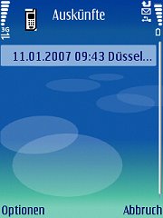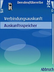 Nachdem Sie alle Eingaben (s.o.) erledigt und die Herstellung einer Internetverbindung handytypabhängig bestätigt haben, wird eine Anfrage an das Auskunftssystem des aktivierten Verkehrsunternehmens gestellt.