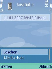 Als Optionen stehen Ihnen die Funktionen "Löschen" und "Alle Löschen" zur Verfügung, mit denen Sie die gewählte Auskunft bzw. alle gespeicherten Auskünfte löschen können: