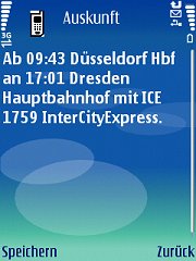 Anschließend wird die Anfrage ausgeführt und ihr Ergebnis angezeigt. Eine Speicherung des/der Ergebnisse(s) sowie der Anfrage ist analog zur Verbindungsauskunft möglich.