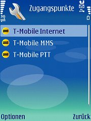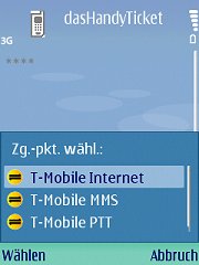 Einige Handys sind in der Lage, mehrere Verbindungsprofile zu speichern - Sie müssen daher eines auswählen. Wählen Sie bitte folgendermaßen: